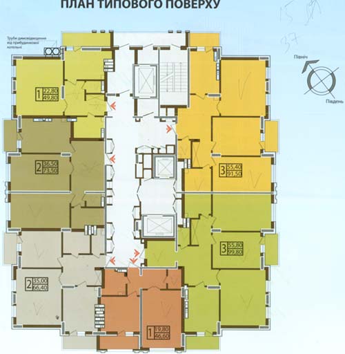 Из 6 квартир 2 направлены почти строго на север. Третья квартира могла быть развернута на юго-запад, но повернута на северо-запад.
